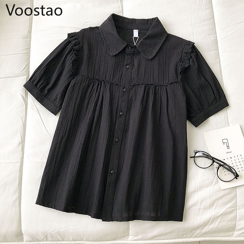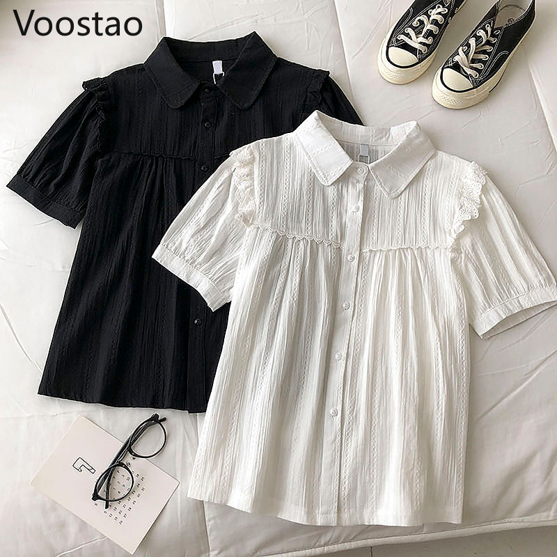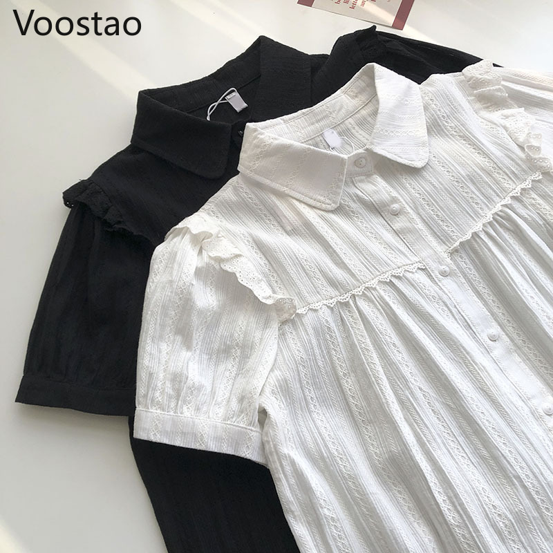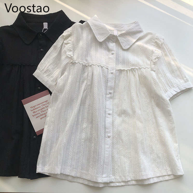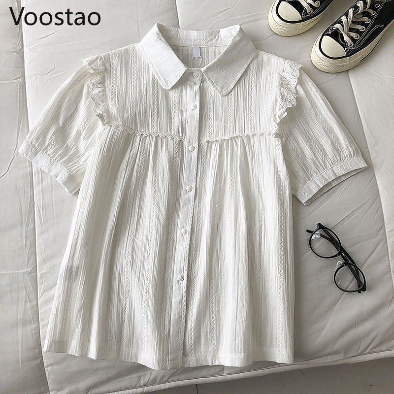 Summer Sweet Lolita Style Blouses Women Korean Chic Lace Ruffles JK Shirts Girls Cute Short Sleeve White Blusas Mujer Tops