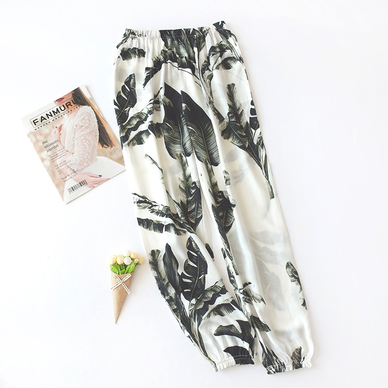 Summer Viscose Rayon Printing Women Pajama Bottoms Elastic Waist Ankle-Length Pants Sleep Wear Women Lounge Wear Closing Pants