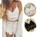Summer Women Sexy Crop Top Lace Flower Pattern Tops Deep V Collar Silm fit Vest Lace Tos See Through Strappy Bralet Tank Top
