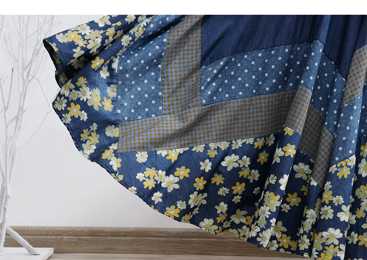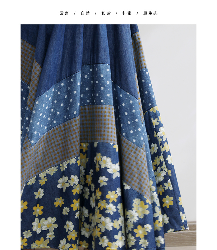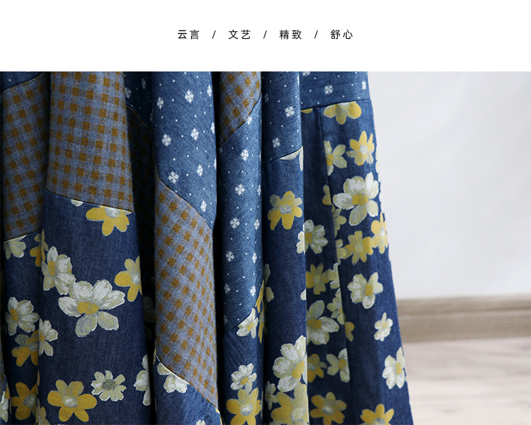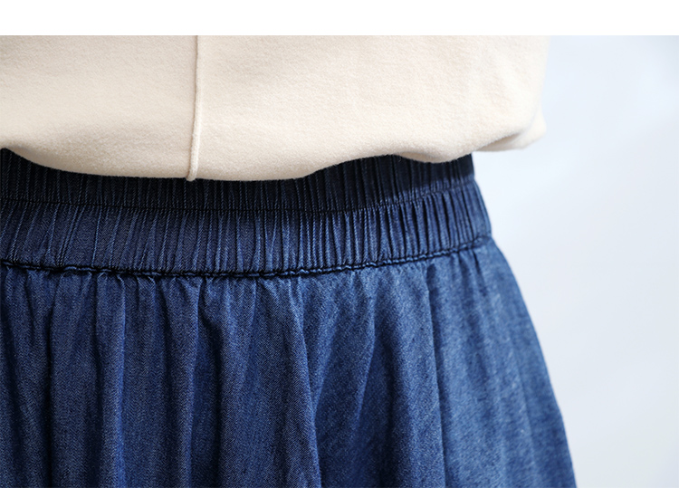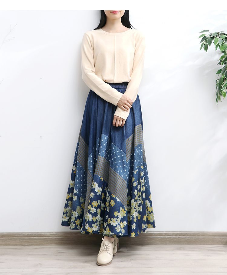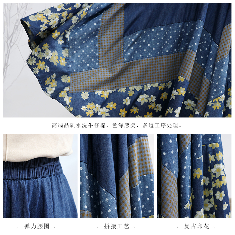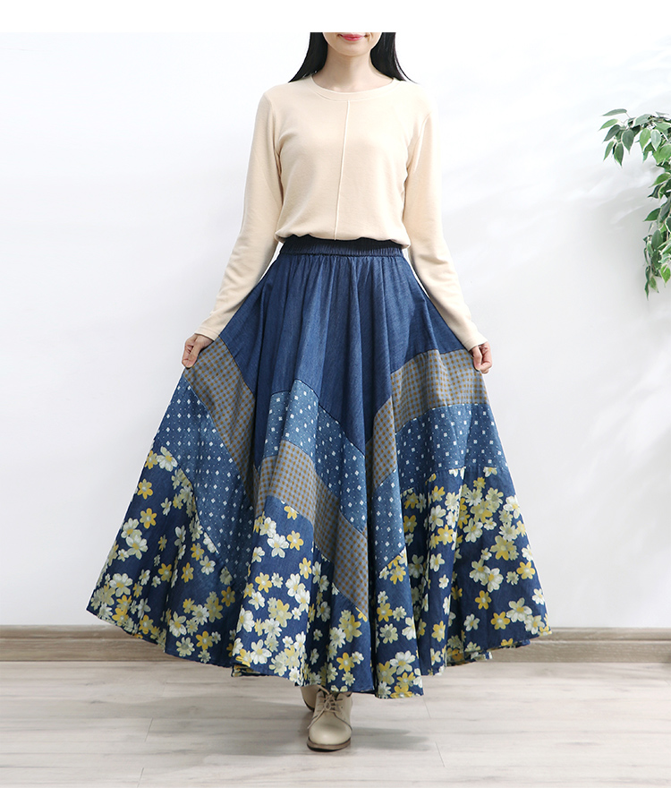 TIYIHAILEY Free Shipping 2022 New Long Maxi A-line Skirt Women Elastic Waist Winter Autumn Denim Jeans Vintage Big Hem Print
