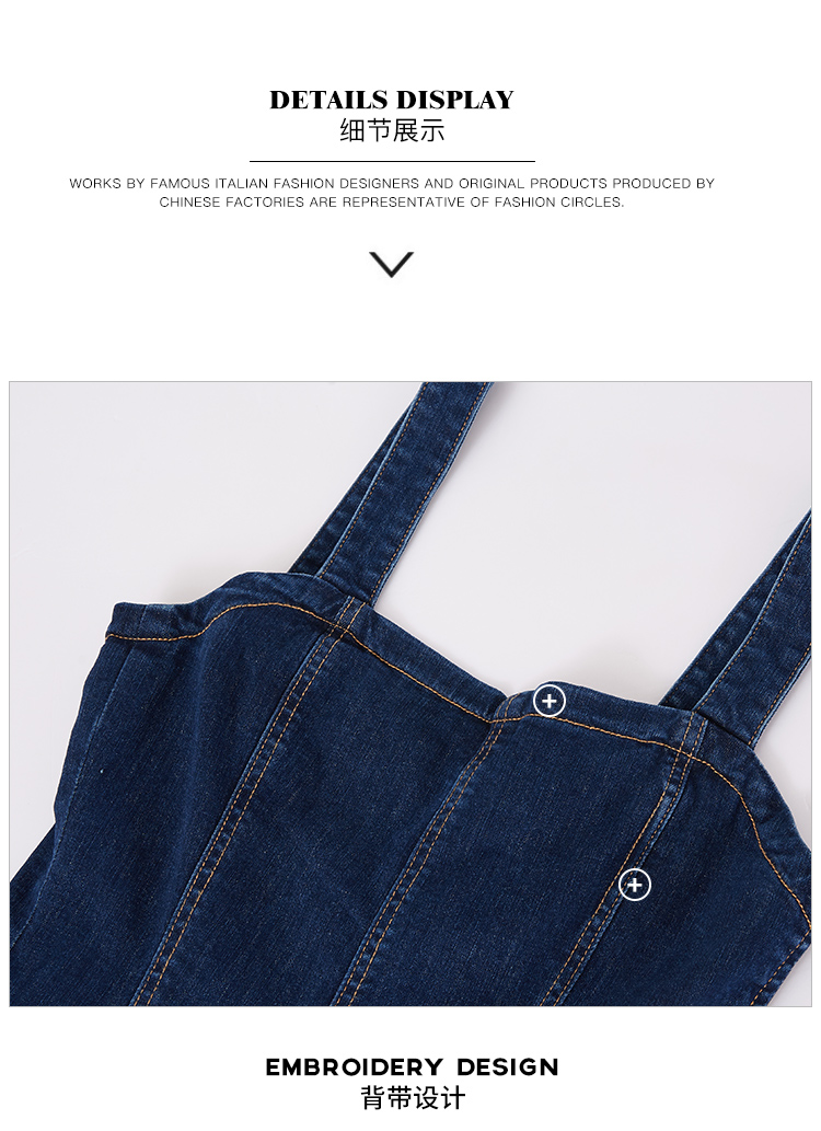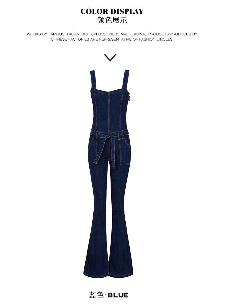 Free Shipping Fashion 2020 Summer Denim Bib Pants High Waist Boot Cut Spaghetti Strap Jumpsuit For Tall Women Plus Size 24-30