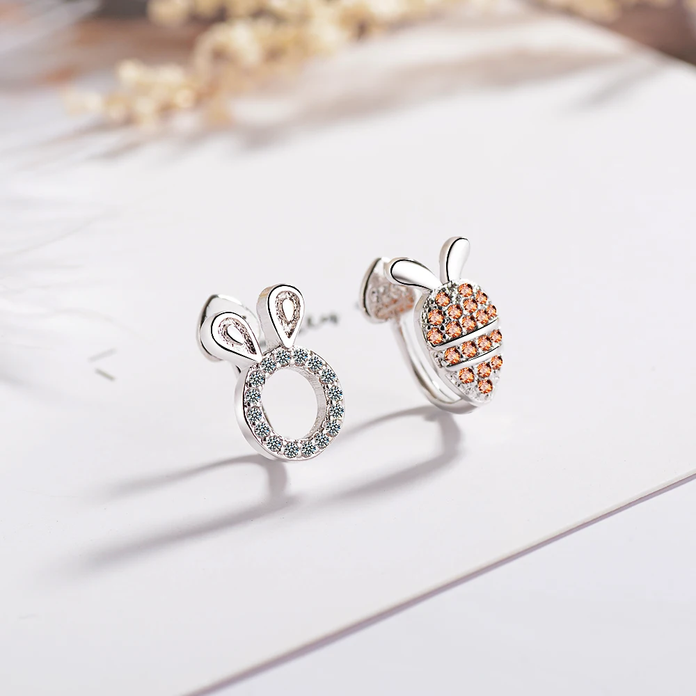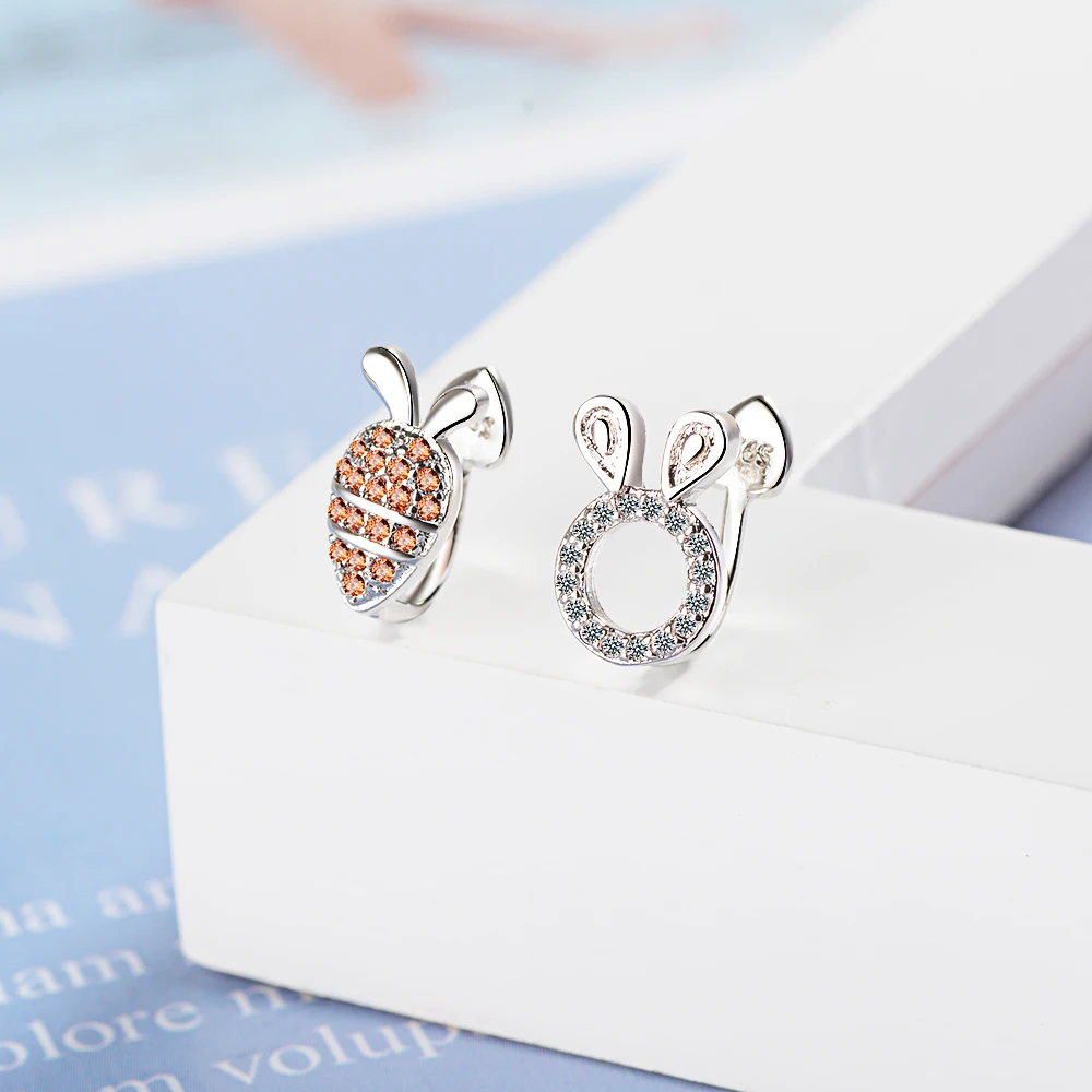 Todorova Lovely Carrot Rabbit Asymmetric Ear Cuff Clip on Earrings for Women Without Piercing Earing Zircon Jewelry