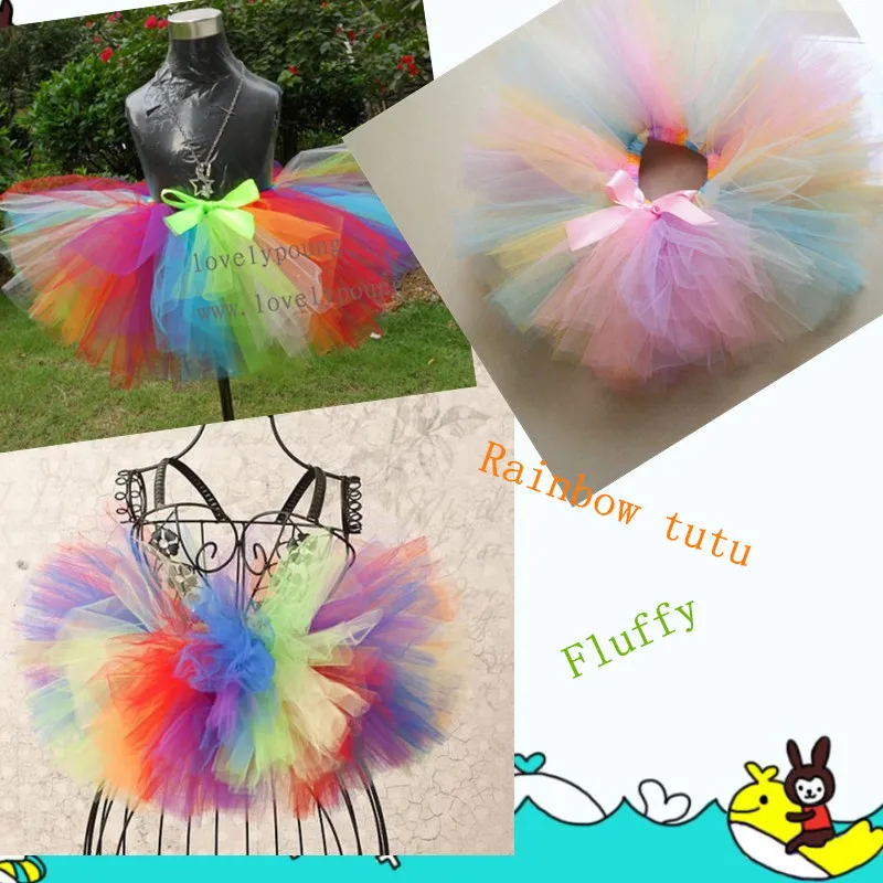 Unicorn Girls Rainbow Color Baby Fluffy Petti Birthday Party Costume Ball Gown Tutu Dance Skirt 100% Handmade