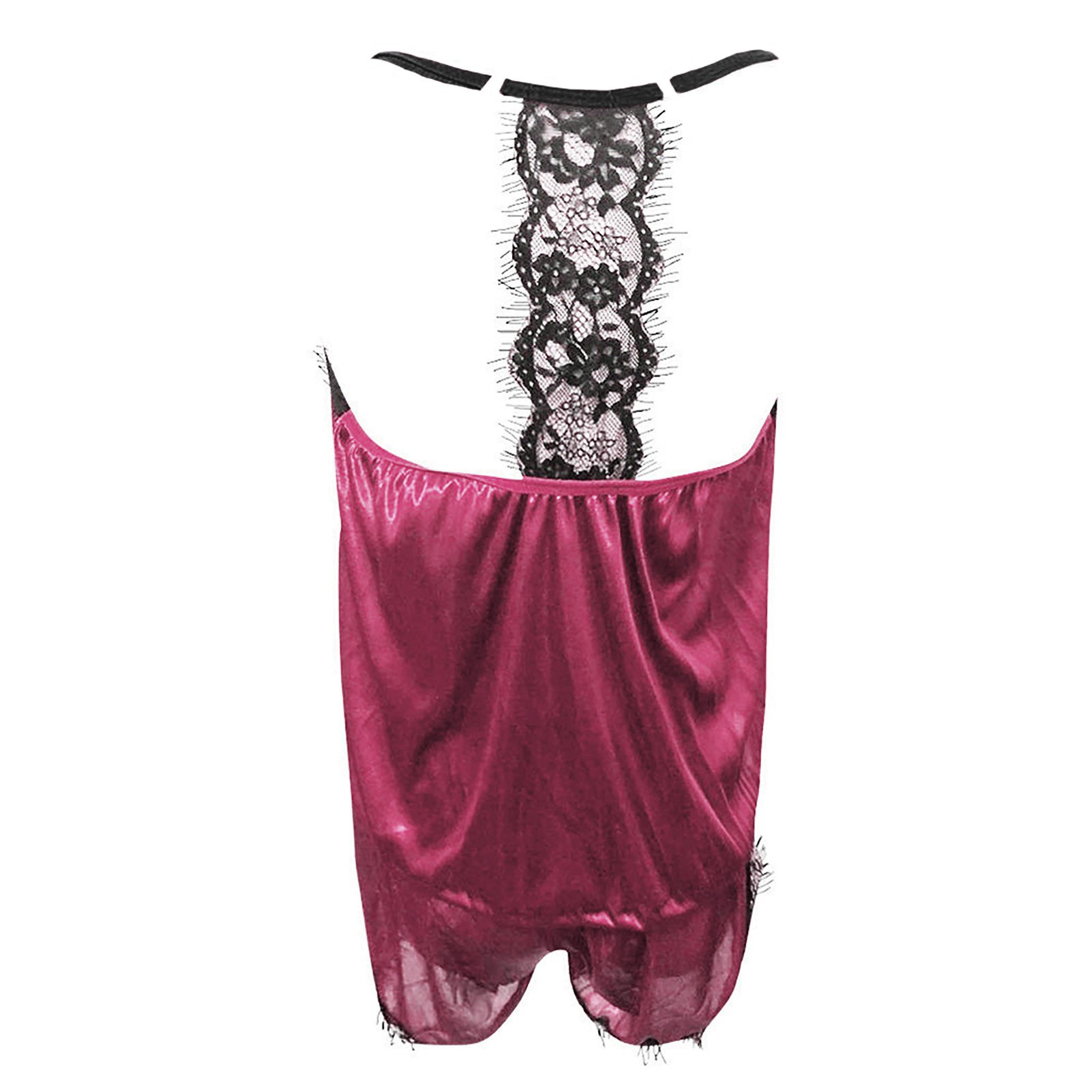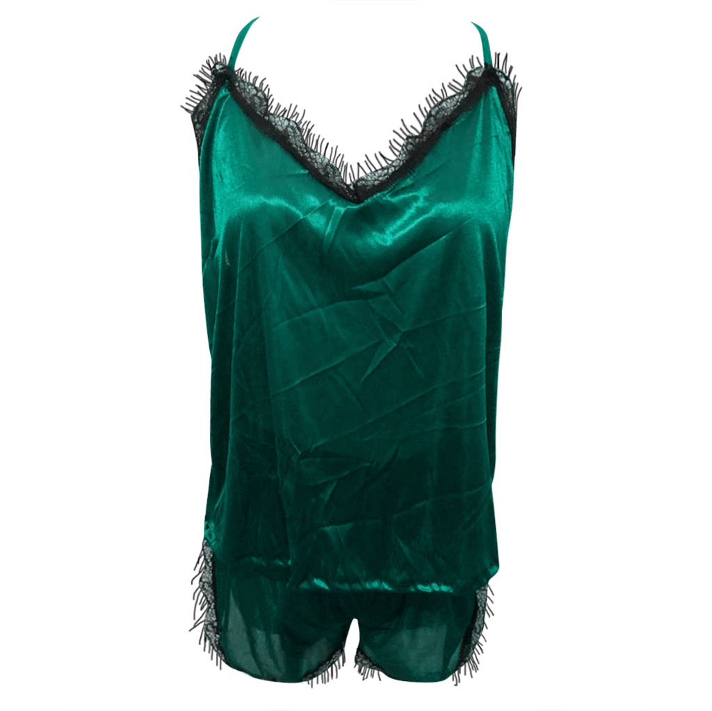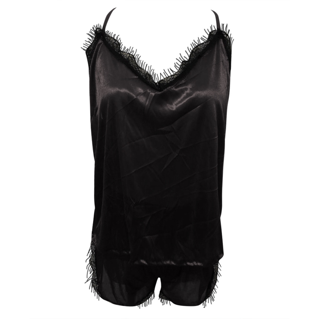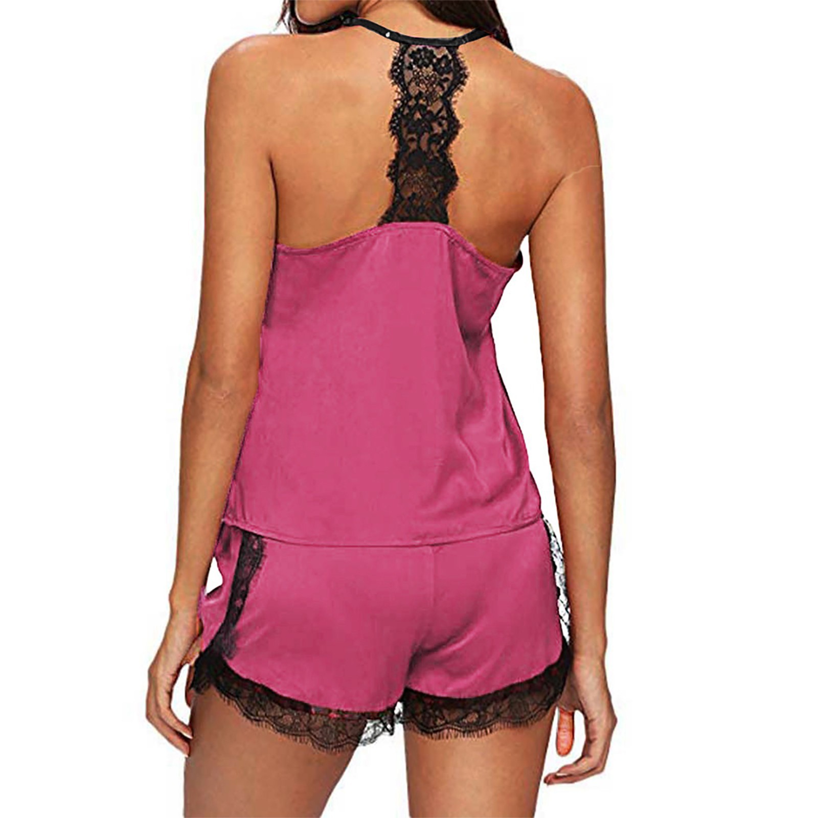 Women Sleepwear Sleeveless Strap Nightwear Lace Trim Satin Top Pajama Sets Suspender Backless Sex Costume Lenceria Sensual Mujer