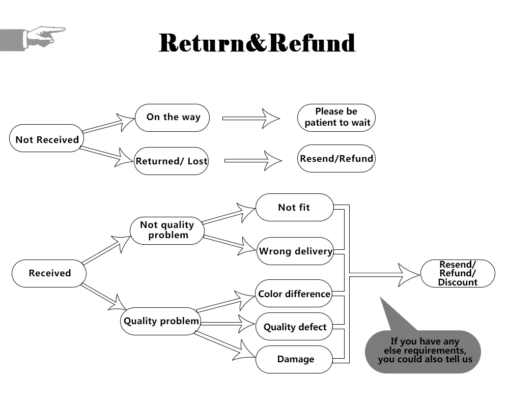 And if you are not satisfied with the item or it is lost along the way, and wanna leave a bad feedback or open a dispute, please contact us in time. Negative feedback can not solve problem, you should tell us the problems, So we can fix it and make you happy.