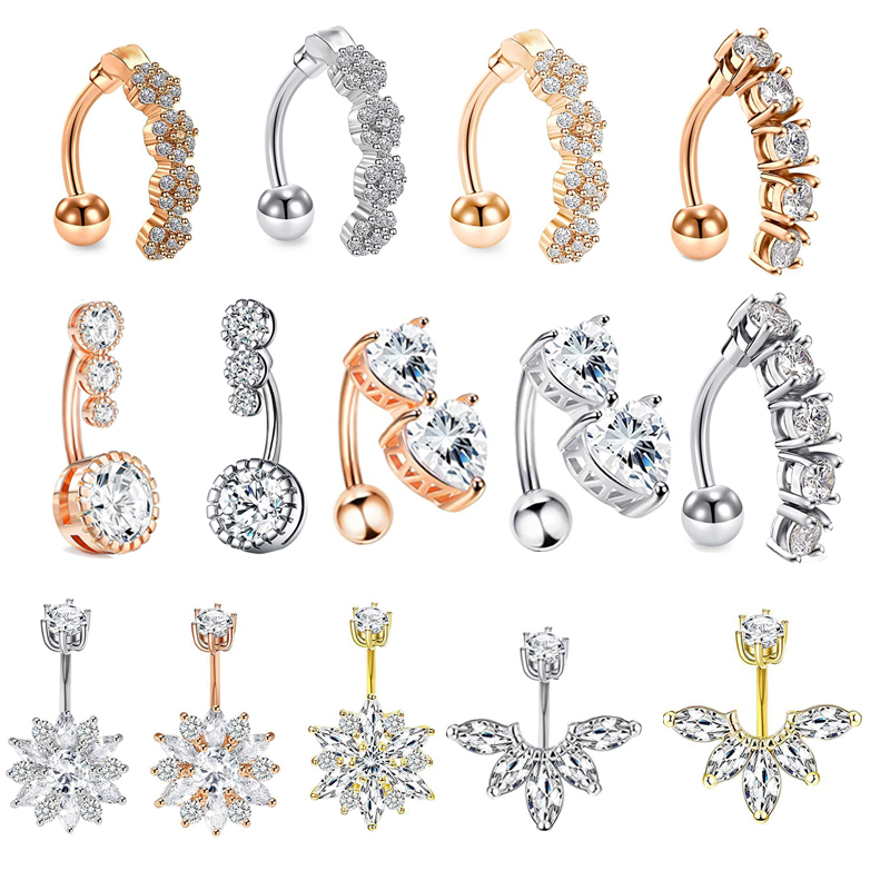 Zircon Belly Button Rings Heart Navel Piercing Sexy Stainless Steel Belly Bar Dangle Rings Fashion Body Piercing Nombril Jewelry